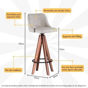 Banqueta Alta Estofada E Giratória Multimóveis Cr20280 Off White Off White A Banqueta Alta Estofada e Giratória Multimóveis CR20280 é uma adição versátil e elegante para sua casa ou estabelecimento comercial. Esta banqueta combina conforto excepcional com um design moderno e sofisticado. O assento é estofado com espuma D23, proporcionando suporte ergonômico e conforto duradouro para seus convidados ou uso diário. Revestida em material sintético de alta qualidade (a cor off white é revestida em tecido linho), esta banqueta é fácil de limpar e mantém sua aparência impecável ao longo do tempo. Com uma capacidade de suporte de até 100kg, esta banqueta é robusta e confiável. Seus pés em madeira apresentam uma base giratória, proporcionando mobilidade e versatilidade adicionais. O aro de ferro pintado oferece um apoio para os pés, adicionando um toque de estilo industrial ao produto. O design moderno desta banqueta complementará perfeitamente os estilos de decoração, desde espaços residenciais até áreas comerciais. Conteúdo da Embalagem: 1 (uma) Banqueta