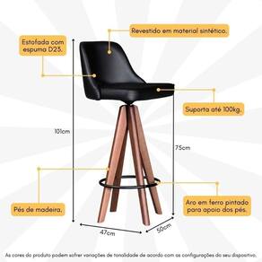 Banqueta Alta Estofada E Giratória Multimóveis Cr20280 Preto Preto A Banqueta Alta Estofada e Giratória Multimóveis CR20280 é uma adição versátil e elegante para sua casa ou estabelecimento comercial. Esta banqueta combina conforto excepcional com um design moderno e sofisticado. O assento é estofado com espuma D23, proporcionando suporte ergonômico e conforto duradouro para seus convidados ou uso diário. Revestida em material sintético de alta qualidade (a cor off white é revestida em tecido linho), esta banqueta é fácil de limpar e mantém sua aparência impecável ao longo do tempo. Com uma capacidade de suporte de até 100kg, esta banqueta é robusta e confiável. Seus pés em madeira apresentam uma base giratória, proporcionando mobilidade e versatilidade adicionais. O aro de ferro pintado oferece um apoio para os pés, adicionando um toque de estilo industrial ao produto. O design moderno desta banqueta complementará perfeitamente os estilos de decoração, desde espaços residenciais até áreas comerciais. Conteúdo da Embalagem: 1 (uma) Banqueta