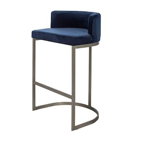 Banqueta Alta Estofada Estrutura Aço Carbono Belly Ii Base Champagne 65cm Suede Azul