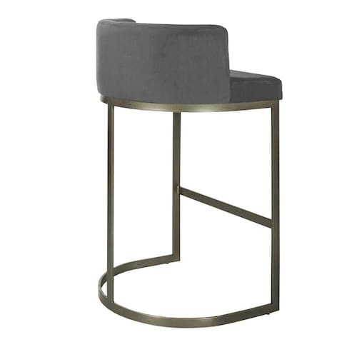 Banqueta Alta Estofada Estrutura Aço Carbono Belly Ii Base Champagne 65cm Suede Cinza - Blush