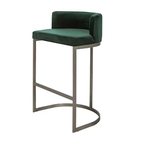 Banqueta Alta Estofada Estrutura Aço Carbono Belly Ii Base Champagne 65cm Suede Verde