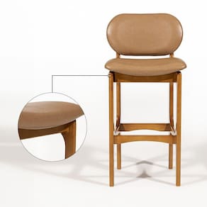 A Banqueta Alta Rafine representa o modelo perfeito para aprimorar qualquer espaço. Apresenta um design contemporâneo, com assento e encosto estofados e anatômicos, proporcionando um conforto excepcional ao móvel. As banquetas são peças versáteis, adaptáveis a diferentes ambientes e usos, permitindo composições variadas na decoração e adicionando conforto e elegância ao espaço. São ideais para serem utilizadas em bancadas de salas integradas, mesas bistrô em áreas gourmet ou em qualquer local onde se faça necessário. Fabricada com madeira maciça, assegura durabilidade e longevidade ao produto.