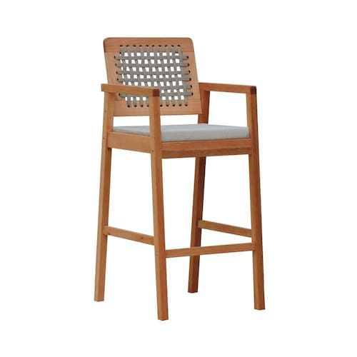 As Banquetas Altas Garden são produzidas madeira de eucalipto, encosto em corda trançada e assento estofado em Tecido Acquablock, que torna em um produto único, com um design moderno, deixando sua casa cada vez mais bonita! Produto simples e atual, podendo ser utilizado em diversos ambientes. As Banquetas Altas Garden são uma ótima opção para as áreas de piscina, jardins, varandas ou até mesmo churrasqueiras.