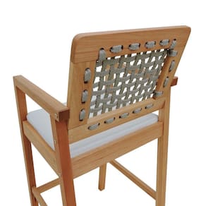 - Materiais: Estrutura em madeira de eucalipto maciça, encosto em corda trançada e assento estofado em Tecido Acquablock