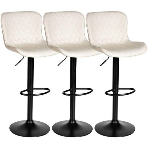Estrutura em Aço em Preto Fosco, Assento em Madeira Compensada Estofada Revestida em Material Sintético (PU)Banqueta Alta Giratória Com Encosto Cozinha Bar Kit 03 Un Bege - P080