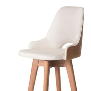 Banqueta Alta Giratória Com Encosto Lary Para Cozinha Composê Corino Nozes E Linho Bege - Aurora Line - Branco