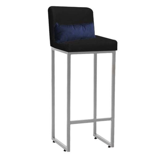 Banqueta Alta Com Encosto Lucca Industrial Cozinha Balcão Ferro Prata Suede Preto E Almofada Azul Marinho - Ahazzo Móveis Cor Azul Marinho