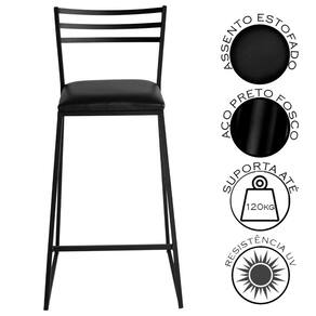 ESPECIFICAÇÕES TÉCNICAS: - Material da Estrutura: Aço Carbono; - Material do Assento: Espuma D28/Couro Sintético; - Material do Encosto: Aço Carbono; - Acabamento: Solda MIG e pintura eletrostática - Possui Braço? Não; - Possui Regulagem de Altura? Não; - Quantidade de Lugar: 01 Lugar; - É Giratória? Não; - Suporta até: 120 kg; - Garantia: 3 Meses; - Necessita de Montagem: Não; - Instruções de Cuidado: Utilizar somente pano macio umedecido com água e sabão neutro; - Dimensões do Produto -LarguraXProfundidadeXAltura-: 49x45x99cm; - Conteúdo da Embalagem: 01 Banquetas; Marca: Acesse Móveis