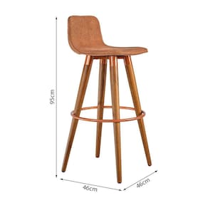 Banqueta Alta Luxo Versatil Aço Cobre Linho Terracota Base Carvalho - Cor: Marrom