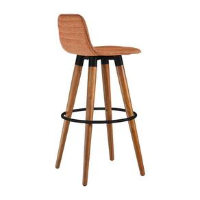 Banqueta Alta Luxo Versatil Aço Preto Linho Terracota Base Carvalho - Cor: Preto
