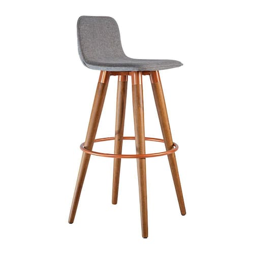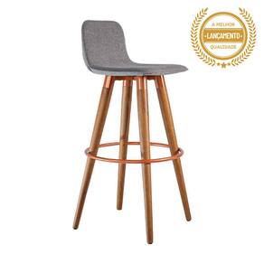Banqueta Alta Luxo Versatil Aço Cobre Linho Cinza Base Carvalho