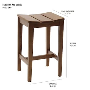 Banqueta Alta Cravo, é um produto estiloso e trará beleza para a sua cozinha e sala de jantar. Essa linda banqueta possui estrutura de madeira maciça. Madeira de qualidade trazendo durabilidade e conforto para seu ambiente. Acabamento da Estrutura: Verniz Altura do assento até o chão: 65 cm Altura Regulável: Não Ambiente Principal: Sala de Jantar Cor: Pinhão Cor do Produto: Pinhão Dobrável: Não Escala de Brilho: Semi-Fosco Itens Inclusos: 1 Banco Manual de Montagem e Instalação: https://product-hub-prd.madeiramadeira.com.br/864792/documents/a4e92e65-5554-4fc7-86cc-84cf04b74e451465715bancomedidas.pdf Material do Assento: Madeira Maciça Necessita Montagem: Não Origem do Produto: Nacional Peso: 6 kg Possui Almofada no Assento: Não Possui Apoio Para os Pés: Sim Possui Encosto: Não Possui Rodízio: Não Recomendações de Uso, Manutenção e Limpeza: Apenas com pano úmido Tipo de Assento: Fixo Tipo de Madeira Maciça: Pinus Ean: 7909903386170