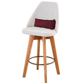 Banqueta Alta Maya Giratória Com Encosto Gourmet Linho Bege E Almofada Bordô - Aurora Line Banqueta Maya Giratória - Aurora Line A Banqueta Maya possui assento e pés em madeira eucalipto com sistema giratório! Os pés contam com um reforço que proporciona um suporte de peso de até 120 Kgs.O assento é revestido com espuma D-23. Além de bonita e charmosa, vai trazer para seu ambiente elegância e proporcionará conforto para sua família e amigos nos momentos de lazer.