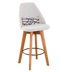 Banqueta Alta Maya Giratória Com Encosto Gourmet Linho Bege E Almofada Linhas Coloridas - Aurora Line Banqueta Maya Giratória - Aurora Line A Banqueta Maya possui assento e pés em madeira eucalipto com sistema giratório! Os pés contam com um reforço que proporciona um suporte de peso de até 120 Kgs.O assento é revestido com espuma D-23. Além de bonita e charmosa, vai trazer para seu ambiente elegância e proporcionará conforto para sua família e amigos nos momentos de lazer.