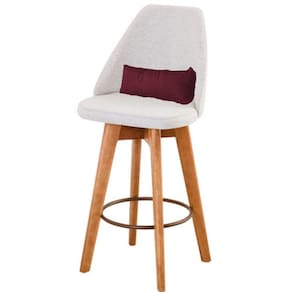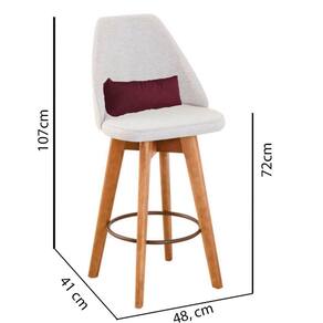Banqueta Alta Maya Giratória Com Encosto Gourmet Linho Bege E Almofada Suede Bordô - Aurora Line Banqueta Maya Giratória - Aurora Line A Banqueta Maya possui assento e pés em madeira eucalipto com sistema giratório! Os pés contam com um reforço que proporciona um suporte de peso de até 120 Kgs.O assento é revestido com espuma D-23. Além de bonita e charmosa, vai trazer para seu ambiente elegância e proporcionará conforto para sua família e amigos nos momentos de lazer.