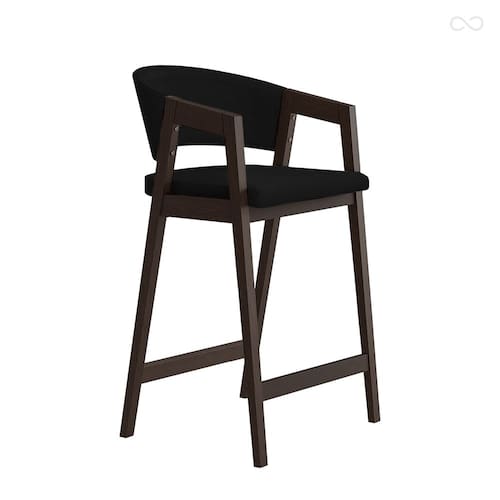 CARACTERÍSTICAS TÉCNICAS: - Produzido em Madeira Maciça; - Acabamento Verniz na Cor Capuccino; - Assento com Espuma D26; - Encosto com Espuma D23; - Revestido em Tecido Suede na Cor Preto.