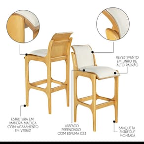 A Banqueta Alta Barcelona promete ser o centro das atenções em todos os ambientes. Com um design exclusivo e moderno, a banqueta é perfeita para bancada de cozinha américa, balcão alto, mesa bar, espaço gourmet, cantinho do churrasco e muito mais. O destaque fica por conta do encosto ergonômico, dando um toque único a banqueta. Produzida com madeira maciça, garantindo a sua durabilidade e vida útil.