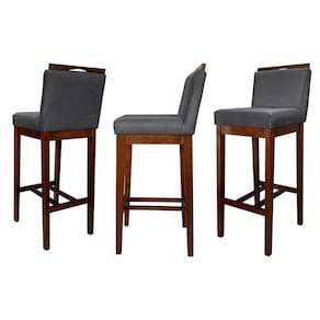 Banqueta Alta para Bancada de Cozinha Líbia Madeira Capuccino Suede Cinza CCS