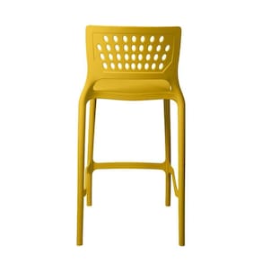 Banqueta Alta Para Bancada E Cozinha Amarela Empilhável Marte Em Polipropileno Acrilys