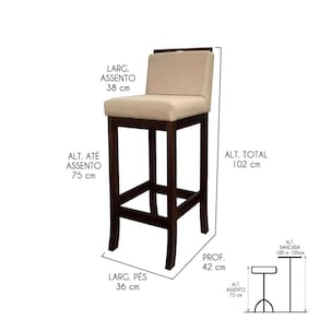 Banqueta Alta para Bancada Turim Madeira Capuccino Linho Bege CCS