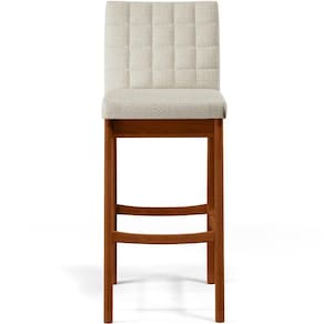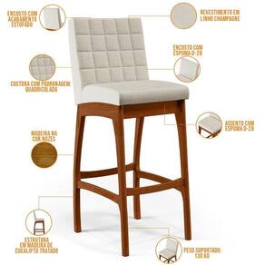 ndo muita excelência, a Banqueta Alta Para Cozinha Sala de Jantar Fixa Mila B04 Linho Champagne - Lyam Decor é o complemento que faltava para deixar sua casa ainda mais extraordinária. Seu encosto com costura em padrão quadriculado e assento estofados, centralizam em si uma graciosidade estonteante, sem perder todo o seu conforto. A estrutura em madeira, na cor nozes, também é digna de notoriedade, por imprimir bastante personalidade a sua decoração. Vale ressaltar ainda, o apoio para os pés que garante maior à mesma.