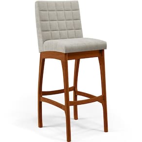 ndo muita excelência, a Banqueta Alta Para Cozinha Sala De Jantar Fixa Mila B04 Bouclê Creme - Lyam Decor é o complemento que faltava para deixar sua casa ainda mais extraordinária. Seu encosto com costura em padrão quadriculado e assento estofados, centralizam em si uma graciosidade estonteante, sem perder todo o conforto, sendo revestidos pelo riquíssimo tecido em bouclê que por si só já é um espetáculo. A estrutura em madeira, na cor nozes, também é digna de notoriedade, por imprimir bastante personalidade a sua decoração. Vale ressaltar ainda, o apoio para os pés que garante maior à mesma.