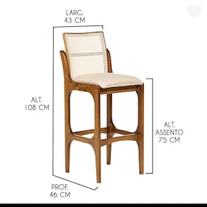 A Banqueta Alta Lisboa é o modelo ideal para complementar o seu ambiente. Dispõe de um design atual com assento estofado e encosto em rattan. As banquetas são móveis versáteis que podem ser utilizados em diversos ambientes e funcionalidades, petindo composições na decoração e agregando conforto e sofisticação ao ambiente. Podem ser utilizadas em bancadas de salas conjugadas, mesas bistrô em sacadas gourmet ou aonde você precisar. Produzida com madeira maciça, garantindo a sua durabilidade e vida útil. CARACTERÍSTICA TÉCNICAS: - Produzido em Madeira Maciça Sustentável - Acabamento em Verniz na cor Imbuia - Assento Estofado Preenchido com Espuma D23 - Encosto com Revestimento em Rattan em Fibra de Algodão Sextavada na cor Bege - Tecido de Alta Qualidade em Linho na cor Bege M58 - Banqueta Entregue Montado INFORMAÇÕES TÉCNICAS: - Altura Total: 108 cm - Altura até o Assento: 75 cm - Largura Total: 43 cm - Profundidade Total: 46 cm INFORMAÇÕES ADICIONAIS: Garantia para defeitos de fabricação conforme Código de Defesa do Consumidor. - ATENÇÃO: Não nos responsabilizamos pela montagem, subir ou içar o móvel. - As imagens ambientadas são meramente ilustrativas e podem apresentar itens que não compõe o produto, as cores do produto podem variar de acordo com o monitor, a iluminação do ambiente ou sua percepção visual. - Limpeza: Deve ser feita com pano macio e seco ou levemente umedecido com água e sabão neutro. Não devem ser utilizados abrasivos. Marca: Império das Banquetas