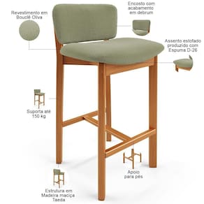 Material: Madeira e Espuma | MaterialFamily: Madeira e Espuma | ProductHeight: 83 cm | Tipo de produto: Banqueta | ProductWidth: 47 cm | Material do estofamento: Bouclê | Model: Banqueta Dara | OriginState: PR | Diâmetro: na | Estilo: Clássico | ProductInstructions: Produto para uso residencial em ambiente interno, não devendo ficar exposto diretamente ao sol, calo | Peso máximo suportado: 150 Kg | É dobrável: Não | Cor do estofamento: Oliva | ProductContents: 01 Banqueta | Color: Oliva | ProductWeight: 10 kg | Com estofado: Sim | Cor: Oliva | ProductWarranty: 90 dias após o do produto | ProductLength: 47 cm | Com rodas: Não | Quantidade de Caixas de embalagem: 1 | Desenho do tecido: Liso | Cor do assento: Oliva | Profundidade do assento: 37 cm | OriginCountry: | SupplierSimpleName: Banqueta Alta Para Cozinha Sala de Jantar Bar Dara L02 Bouclê Oliva - Lyam Decor | SizeDescription: Altura: 83cm x Largura: 47cm x Profundidade: 47cm | Com espaço de armazenamento: Não | Com apoio de braços: Não | Largura do assento: 45 cm | Espessura do assento: na | Peso: 10 kg | Requer montagem: Não | É cadeira de balanço: Não | Altura do assento a partir do solo: 74 cm | Largura da cadeira: 47 cm | Largura: 47 cm | Profundidade da cadeira: 47 cm | Altura da cadeira: 83 cm | Fabricante: Lyam Decor | É empilhável: Não | Cor da estrutura da cadeira: Castanho