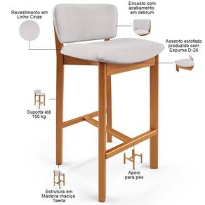 Na cozinha ou qualquer outro ambiente, a Banqueta Dara se destaca por seu design clássico, sem deixar de exaltar a delicadeza deste modelo. Com uma estrutura de madeira que exala nobreza e sofisticação, essa banqueta estofada é o convite perfeito para momentos de confraternizar. O estofado macio, harmoniza com os demais elementos do ambiente, além do encosto proporcionar muito conforto enquanto se desfruta de momentos incríveis com aconchego. A vida é feita de pequenas celebrações, e essa banqueta está pronta para torná-las ainda mais especiais. Adicione ao seu carrinho e aproveite!
