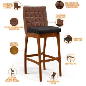Entregando muita excelência, a Banqueta Alta Para Cozinha Sala De Jantar Fixa Mila B04 Couríssimo Marrom Linho Chumbo - Lyam Decor é o complemento que faltava para deixar sua casa ainda mais extraordinária. Seu encosto com costura em padrão quadriculado e assento estofados, centralizam em si uma graciosidade estonteante, sem perder todo o conforto. A estrutura em madeira, na cor nozes, também é digna de notoriedade, por imprimir bastante personalidade a sua decoração. Vale ressaltar ainda, o apoio para os pés que garante maior segurança à mesma.