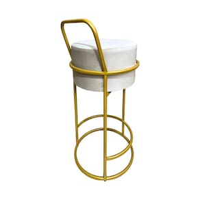 Tipo: Banqueta alta Modelo: Redonda Cor Tecido: Bege Tecido Veludo. Cor da Base: Dourada Base em Ferro
