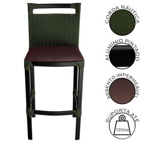 Banqueta Alta Vigor Em Alumínio E Corda Náutica Verde Verde Com Marrom A Banqueta Vigor acrescenta um charme unico a qualquer espaco, sendo ideal para quem busca combinar funcionalidade e estilo em ambientes externos. Produzida com material de alta qualidade e feita de forma artesanal. Sua estrutura e composta por aluminio e acabamentos em corda nautica, combinando durabilidade com estilo contemporaneo. Possui encosto fixo em corda nautica, que oferece um apoio confortavel enquanto adiciona um toque de design unico. Alem disso, o assento e estofado impermeavel garantindo conforto e praticidade, sendo adequada para areas externas, como areas gourmet, espacos de churrasqueira, ediculas e outros ambientes ao ar livre. ESPECIFICACOES TECNICAS: - Material da Estrutura: Aluminio; - Material do Assento: Estofado impermeavel; - Material do Encosto: Corda nautica; - Possui Braco? Nao; - Possui Regulagem de Altura? Nao; - Quantidade de Lugar: 01 Lugar; - E Giratoria? Nao; - Suporta ate: 120 kg; - Garantia: 3 Meses; - Necessita de Montagem: Nao; - Instrucoes de Cuidado: Nao utilizar produtos quimicos na fibra e nem na estrutura para limpeza, somente pano macio umedecido com agua e sabao neutro; - Dimensoes do Produto (LarguraXProfundidadeXAltura): 45x45x110cm; - Conteudo da Embalagem: 01 Banquetas; Marca: ACESSE MÓVEIS