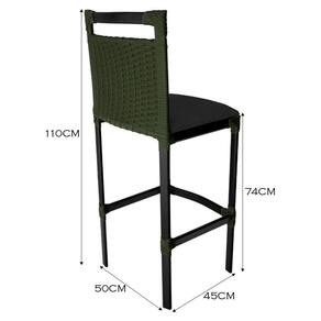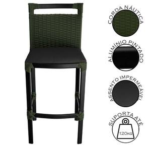 Banqueta Alta Vigor Em Alumínio E Corda Náutica Verde Verde Com Preto A Banqueta Vigor acrescenta um charme unico a qualquer espaco, sendo ideal para quem busca combinar funcionalidade e estilo em ambientes externos. Produzida com material de alta qualidade e feita de forma artesanal. Sua estrutura e composta por aluminio e acabamentos em corda nautica, combinando durabilidade com estilo contemporaneo. Possui encosto fixo em corda nautica, que oferece um apoio confortavel enquanto adiciona um toque de design unico. Alem disso, o assento e estofado impermeavel garantindo conforto e praticidade, sendo adequada para areas externas, como areas gourmet, espacos de churrasqueira, ediculas e outros ambientes ao ar livre. ESPECIFICACOES TECNICAS: - Material da Estrutura: Aluminio; - Material do Assento: Estofado impermeavel; - Material do Encosto: Corda nautica; - Possui Braco? Nao; - Possui Regulagem de Altura? Nao; - Quantidade de Lugar: 01 Lugar; - E Giratoria? Nao; - Suporta ate: 120 kg; - Garantia: 3 Meses; - Necessita de Montagem: Nao; - Instrucoes de Cuidado: Nao utilizar produtos quimicos na fibra e nem na estrutura para limpeza, somente pano macio umedecido com agua e sabao neutro; - Dimensoes do Produto (LarguraXProfundidadeXAltura): 45x45x110cm; - Conteudo da Embalagem: 01 Banquetas; Marca: ACESSE MÓVEIS