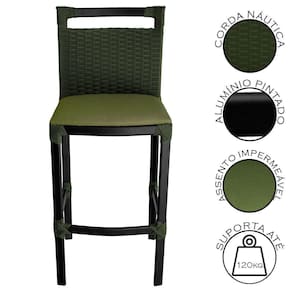 Banqueta Alta Vigor Em Alumínio E Corda Náutica Verde Verde A Banqueta Vigor acrescenta um charme unico a qualquer espaco, sendo ideal para quem busca combinar funcionalidade e estilo em ambientes externos. Produzida com material de alta qualidade e feita de forma artesanal. Sua estrutura e composta por aluminio e acabamentos em corda nautica, combinando durabilidade com estilo contemporaneo. Possui encosto fixo em corda nautica, que oferece um apoio confortavel enquanto adiciona um toque de design unico. Alem disso, o assento e estofado impermeavel garantindo conforto e praticidade, sendo adequada para areas externas, como areas gourmet, espacos de churrasqueira, ediculas e outros ambientes ao ar livre. ESPECIFICACOES TECNICAS: - Material da Estrutura: Aluminio; - Material do Assento: Estofado impermeavel; - Material do Encosto: Corda nautica; - Possui Braco? Nao; - Possui Regulagem de Altura? Nao; - Quantidade de Lugar: 01 Lugar; - E Giratoria? Nao; - Suporta ate: 120 kg; - Garantia: 3 Meses; - Necessita de Montagem: Nao; - Instrucoes de Cuidado: Nao utilizar produtos quimicos na fibra e nem na estrutura para limpeza, somente pano macio umedecido com agua e sabao neutro; - Dimensoes do Produto (LarguraXProfundidadeXAltura): 45x45x110cm; - Conteudo da Embalagem: 01 Banquetas; Marca: ACESSE MÓVEIS