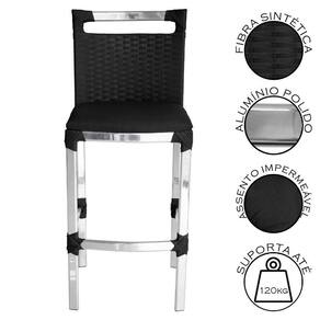 Banqueta Alta Vigor Em Alumínio E Fibra Sintética Preto/preto A Banqueta Vigor acrescenta um charme unico a qualquer espaco, sendo ideal para quem busca combinar funcionalidade e estilo em ambientes externos. A Banqueta Vigor e uma peca ideal para transformar qualquer ambiente externo, unindo charme, funcionalidade e estilo. Meticulosamente produzido de forma artesanal, esse banquete se destaca pela utilizacao de materiais de alta qualidade. Sua estrutura e feita de aluminio polido, conhecida por sua leveza e resistencia a corrosao, garantindo durabilidade mesmo em condicoes climaticas adversas. Os acabamentos sao em fibra sintetica com tratamento anti-UV, que nao apenas prolongam a vida util da peca, mas tambem preservam suas propriedades e aparencia, tornando-a perfeita para areas expostas ao sol. O encosto fixo, tambem em fibra sintetica, proporciona um apoio ergonomico e confortavel, ao mesmo tempo em que adiciona um toque de design sofisticado e exclusivo. O assento e estofado com espuma D28, reconhecido por seu excelente suporte e conforto. Para completar, e revestido com tecido impermeavel, facilitando a limpeza e manutencao, alem de ser ideal para locais onde ha exposicao a umidade. A Banqueta Vigor se adapta perfeitamente a areas gourmet, espacos de churrasqueira, ediculas e outros ambientes ao ar livre, trazendo praticidade e praticidade a esses espacos. ESPECIFICACOES TECNICAS: - Material da Estrutura: Aluminio Polido; - Material do Assento: Espuma D28/Estofado impermeavel; - Material do Encosto: Fita Sintetica; - Possui Braco? Nao; - Possui Regulagem de Altura? Nao; - Quantidade de Lugar: 01 Lugar; - E Giratoria? Nao; - Suporta ate: 120 kg; - Garantia: 3 Meses; - Necessita de Montagem: Nao; - Instrucoes de Cuidado: Utilizar somente pano macio umedecido com agua e sabao neutro; - Dimensoes do Produto (LarguraXProfundidadeXAltura): 45x45x110cm; - Conteudo da Embalagem: 01 Banquetas; Marca: ACESSE MÓVEIS