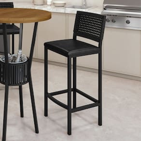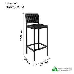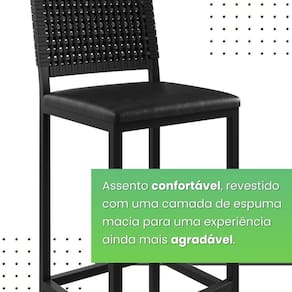 A banqueta com assento estofado oferece conforto excepcional, enquanto o encosto em corda náutica adiciona um toque de estilo contemporâneo e durabilidade. Sua estrutura em aço robusto garante estabilidade e longa vida útil, sendo ideal para diversos ambientes. Os apoios para os pés proporcionam ergonomia e conforto adicional, tornando esta peça perfeita para cozinhas, bares, áreas gourmet e bancadas. Acabamento da Estrutura: Pintura Altura do assento até o chão: 75 cm Altura Regulável: Não Ambiente Principal: Jardim e Varanda Cor: Preto Cor do Produto: Preto Dobrável: Não Escala de Brilho: Semi-Fosco Itens Inclusos: 01 Banqueta Marca: PAONANDA DECOR Material do Assento: MDF Necessita Montagem: Não Origem do Produto: Nacional Peso: 7,4 kg Possui Encosto: Sim Possui Rodízio: Não Recomendações de Uso, Manutenção e Limpeza: Limpe com um pano úmido e detergente neutro, secando bem em seguida. Tipo de Assento: Fixo Tipo de Encosto: Fixo Marca: PAONANDA DECOR