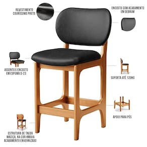 Amplamente sofisticada, a Banqueta Baixa Bar Cozinha Sala Jantar Betta L02 Imbuia Couríssimo Preto - Lyam Decor irá agregar ainda mais valor em sua decoração!! Sendo capaz de compor muito bem o ambiente, é produzida com materiais de excelente qualidade, a resistente estrutura em madeira de Taeda, na cor imbuia, conta com apoio para os pés (que garante maior ), além do assento e encosto estofados super confortáveis e convidativos, que são revestidos em tecido Couríssimo, composição extremamente elegante.