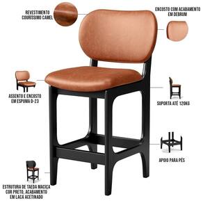 Amplamente sofisticada, a Banqueta Baixa Bar Cozinha Sala Jantar Betta L02 Couríssimo Camel - Lyam Decor irá agregar ainda mais valor em sua decoração!! Sendo capaz de compor muito bem o ambiente, é produzida com materiais de excelente qualidade, a resistente estrutura em madeira de Taeda, na cor Preto, conta com apoio para os pés (que garante maior segurança), além do assento e encosto estofados super confortáveis e convidativos, que são revestidos em tecido Couríssimo, composição extremamente elegante.