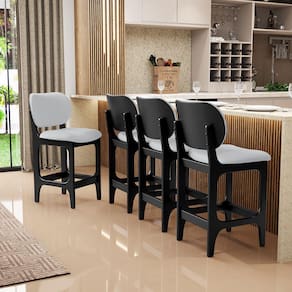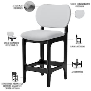 Amplamente sofisticada, a Banqueta Baixa Bar Cozinha Sala Jantar Betta L02 Linho Cinza - Lyam Decor irá agregar ainda mais valor em sua decoração!! Sendo capaz de compor muito bem o ambiente, é produzida com materiais de excelente qualidade, a resistente estrutura em madeira de Taeda, na cor Preto, conta com apoio para os pés (que garante maior segurança), além do assento e encosto estofados super confortáveis e convidativos, que são revestidos em tecido Couríssimo, composição extremamente elegante.