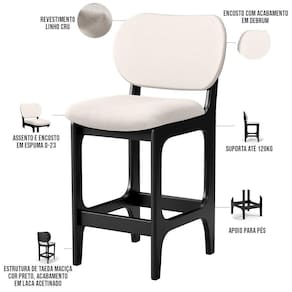 Amplamente sofisticada, a Banqueta Baixa Bar Cozinha Sala Jantar Betta L02 Linho Cru - Lyam Decor irá agregar ainda mais valor em sua decoração!! Sendo capaz de compor muito bem o ambiente, é produzida com materiais de excelente qualidade, a resistente estrutura em madeira de Taeda, na cor Preto, conta com apoio para os pés (que garante maior segurança), além do assento e encosto estofados super confortáveis e convidativos, que são revestidos em tecido Couríssimo, composição extremamente elegante.