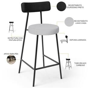 Amplamente moderna, dispondo de muito realce e design singular, a Banqueta Baixa Para Cozinha Sala De Jantar Bar Bancada Milão L02 Couríssimo Preto Linho Cinza - Lyam Decor vem com a personalidade e elegância que sua decoração merece! Estruturada em aço carbono, contrasta lindamente com o encosto e assento estofados, cabe mencionar ainda seu revestimento em Couríssimo, é confeccionada por materiais de excelente qualidade, extremamente resistentes e aconchegantes.