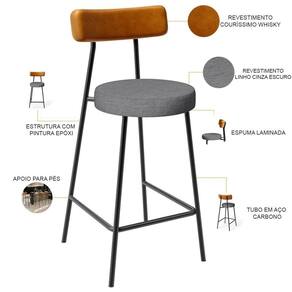 Amplamente moderna, dispondo de muito realce e design singular, a Banqueta Baixa Para Cozinha Sala De Jantar Bar Bancada Milão L02 Couríssimo Whisky Linho Cinza Escuro - Lyam Decor vem com a personalidade e elegância que sua decoração merece! Estruturada em aço carbono, contrasta lindamente com o encosto e assento estofados, cabe mencionar ainda seu revestimento em Couríssimo, é confeccionada por materiais de excelente qualidade, extremamente resistentes e aconchegantes.