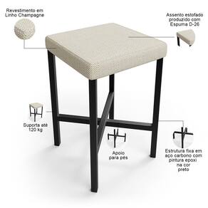 Color: Bege | ColorFamily: Bege | ColorSimple: Bege | ColorSupplier: Champagne | Material: Estrutura de aço carbono, Revestimento em Linho e espuma | MaterialFamily: Aço carbono, linho espuma | Model: Stella | OriginCountry: Nacional | OriginState: PR | ProductContents: 01 Banqueta | ProductHeight: 49 cm | ProductInstructions: Produto para uso em ambiente interno, nao devendo ficar exposto ao sol, calor e umidade excessivos. | ProductLength: 37 cm | ProductWarranty: 90 dias após o recebimento do produto | ProductWeight: 4 kg | ProductWidth: 39 cm | SizeDescription: Altura: 49 cm x Largura: 39 cm x Profundidade: 37 cm | SupplierSimpleName: Banqueta Baixa Bar Cozinha Sala De Jantar Preto Stella L02 Linho Champagne - Lyam Decor