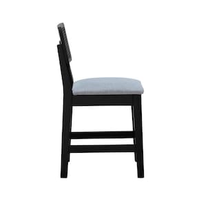 Banqueta Baixa-cadeira Gabi - Preto Assento Estof. Linho Cinza Mescla Impermeável
