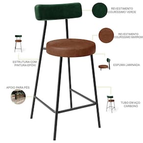 Amplamente moderna, dispondo de muito realce e design singular, a Banqueta Baixa Para Cozinha Sala De Jantar Bar Bancada Milão L02 Facto Verde Musgo Couríssimo Marrom - Lyam Decor vem com a personalidade e elegância que sua decoração merece! Estruturada em aço carbono, contrasta lindamente com o encosto e assento estofados, cabe mencionar ainda seu revestimento em Couríssimo, é confeccionada por materiais de excelente qualidade, extremamente resistentes e aconchegantes.