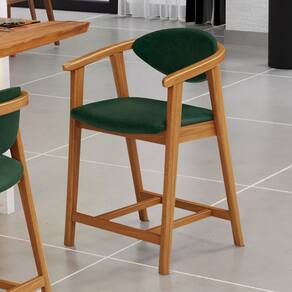 Banqueta Baixa Para Cozinha Sala de Jantar Bancada Cecília L02 Couríssimo Verde Musgo - Lyam Decor