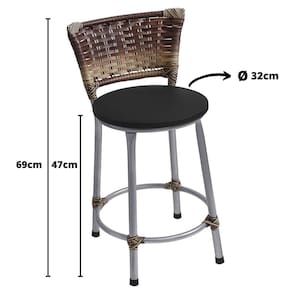 Banqueta Baixa Prata Junco Argila com Assento Preto FortmixSeja para acompanhar um café rápido no início do dia ou aquela confraternização especial com os amigos, a Banqueta Baixa com Encosto será uma grande aliada na composição do seu espaço. Modelo baixa, ela é ideal para acompanhar bancadas e balcões, seja na sala de jantar, espaço de churrasqueira ou até mesmo em seu estabelecimento comercial.Com design simples que conta com cor sóbria, a peça embeleza o seu espaço ao mesmo tempo que garante a comodidade ideal, afinal, o assento preenchido em espuma recebe superbem o corpo além do suporte para os pés.Produto que faz toda diferença no seu ambiente.Características da Banqueta Baixa com EncostoCor da estrutura: PrataCor do Assento: PretoCapacidade (kg): 120 kgMaterial da estrutura: Tubos de Aço carbono (7/8 de polegada)Material do assento: MDF e EspumaEncosto: JuncoDimensões Altura do assento até o chão (cm): 47 CmAltura do encosto até o chão (cm): 69 CmDiâmetro do assento: 32 CmConteúdo da Embalagem: 01 Banqueta Baixa com EncostoDicasNão deixe suas banquetas expostas ao sol por mais de 4 horas;Não use produtos abrasivos na limpeza de suas Banquetas;Usar um pano umedecido na limpeza da Banqueta e, logo em seguida, seque-as com um pano seco.A tonalidade da cor pode variar de acordo com o lote do fabricante e/ou as configurações de seu monitor.*Imagens meramente ilustrativasGarantia3 Meses contra defeito de fabricação