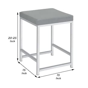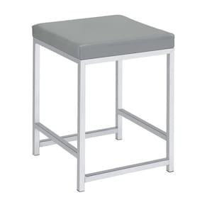 Banqueta com assento de couro sintético e estrutura tubular cinza