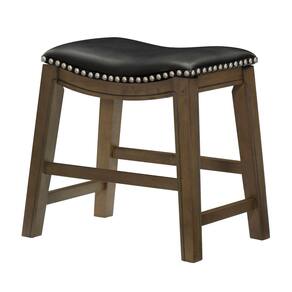 Banqueta de jantar Benjara Miel de 20 polegadas, madeira maciça de couro sintético, preto e marrom