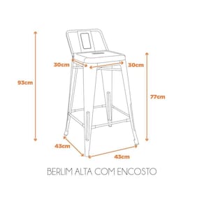 A Banqueta Berlim Alta com Encosto - Preto tem seu estilo industrial, trazendo um pouco do charme urbano sem perder a elegância, modernidade e elementos rústicos com muita sofisticação. Com sua estrutura em aço certamente, será o móvel ideal a você que gostaria de dar uma repaginada em seu ambiente.